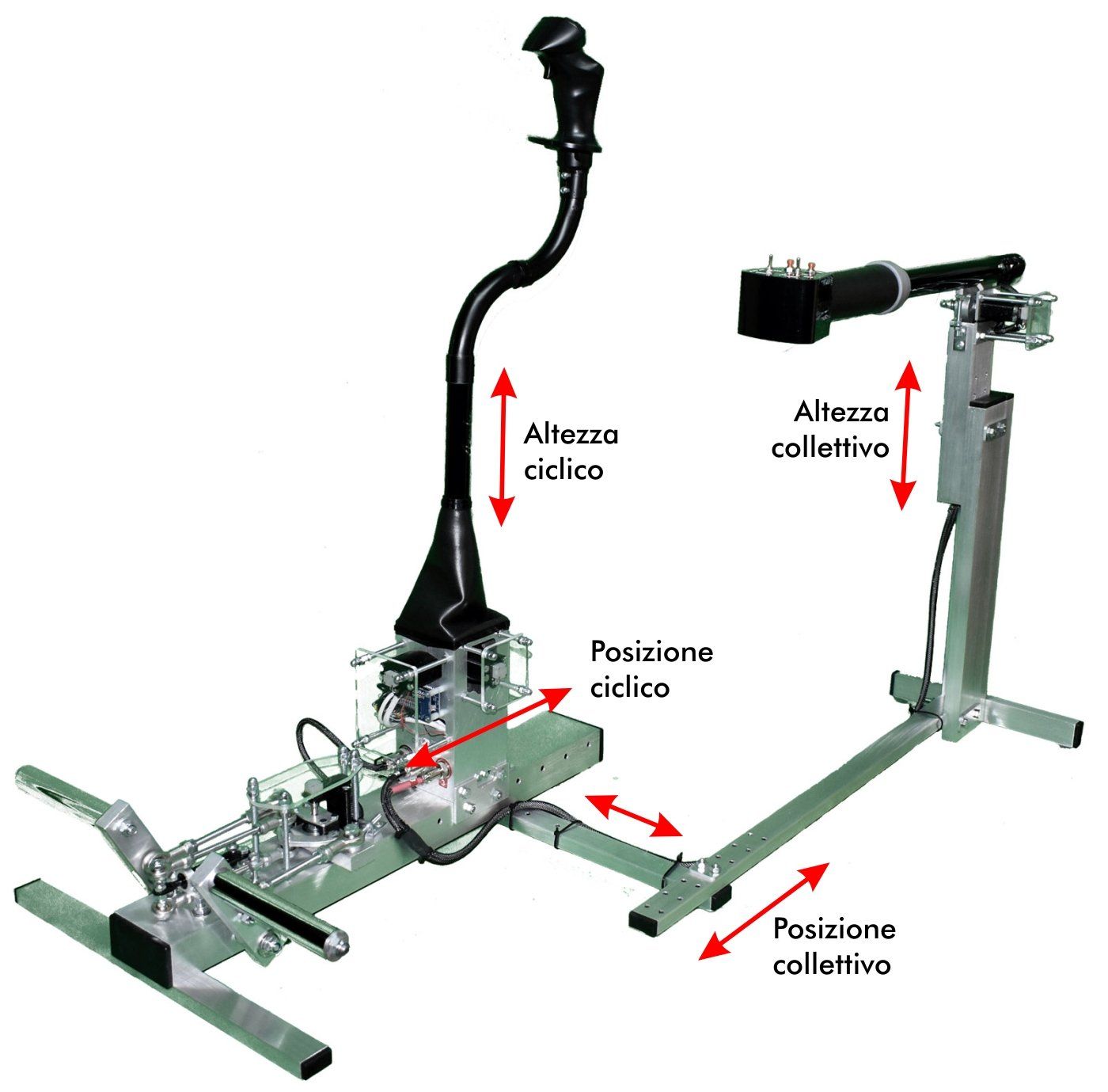 Pedali, Joystick, Collettivo, Throttle, e scatola switches.
